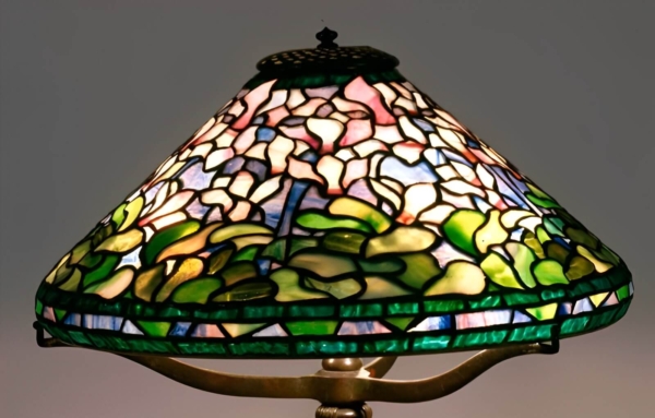 This is a reproduction based on Tiffany’s Cyclamen design. IT WILL FIT ON AN ODYSSEY 16″ POPPY CONE FORM! (T1461) This pattern will be MAILED, complete with 2 paper patterns and one polypropylene sheet to glue onto the existing form. Polypropylene is a plastic, like mylar, but white. it can easily be adhered to your Odyssey form with a spray adhesive and is virtually tear proof! Cleans up with mineral sprits with no harm to your original form. This shade has 5 repeats and requires a 3″ ring, wheel and cap.