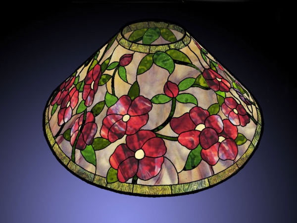 This is a reproduction based on a Riviere Studio’s design. IT WILL FIT ON AN ODYSSEY 16″ POPPY CONE FORM! (T1461) This pattern will be MAILED, complete with 2 paper patterns and one polypropylene sheet to glue onto the existing form. Polypropylene is a plastic, like mylar, but white. it can easily be adhered to your Odyssey form with a spray adhesive and is virtually tear proof! This shade has 3 repeats.