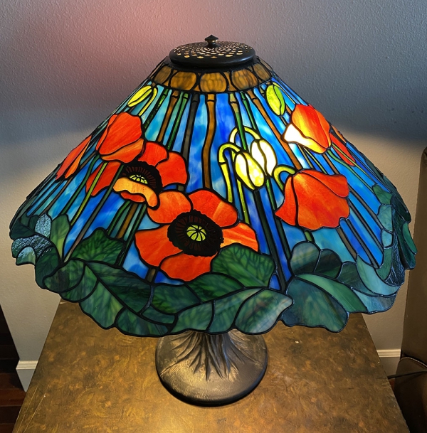 This is a reproduction based on a Tiffany design that had never actually been made. IT WILL FIT ON AN ODYSSEY 20″ POPPY CONE FORM! this pattern will be MAILED, complete with 2 paper patterns and one polypropylene sheet to glue onto the existing form. Polypropylene is a plastic, like mylar, but white. it can easily be adhered to your Odyssey form with a spray adhesive and is virtually tear proof! it was designed as a 4 repeat and can be used with or without the available Odyssey brass filigree.