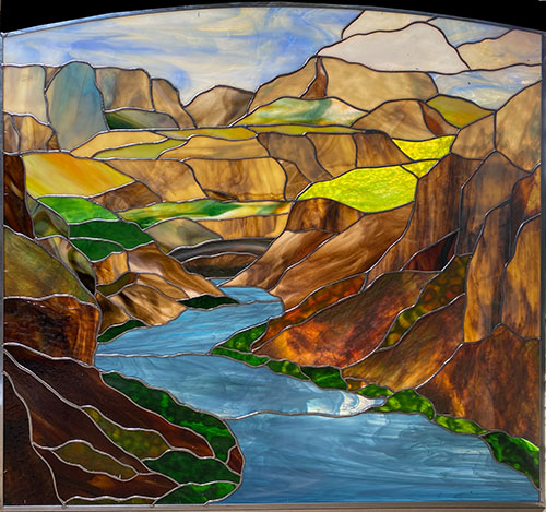 Canyon Rocky Mountain river gorge stained glass pattern. Recommended minimum size 24″X24″ but can be enlarged to any size.