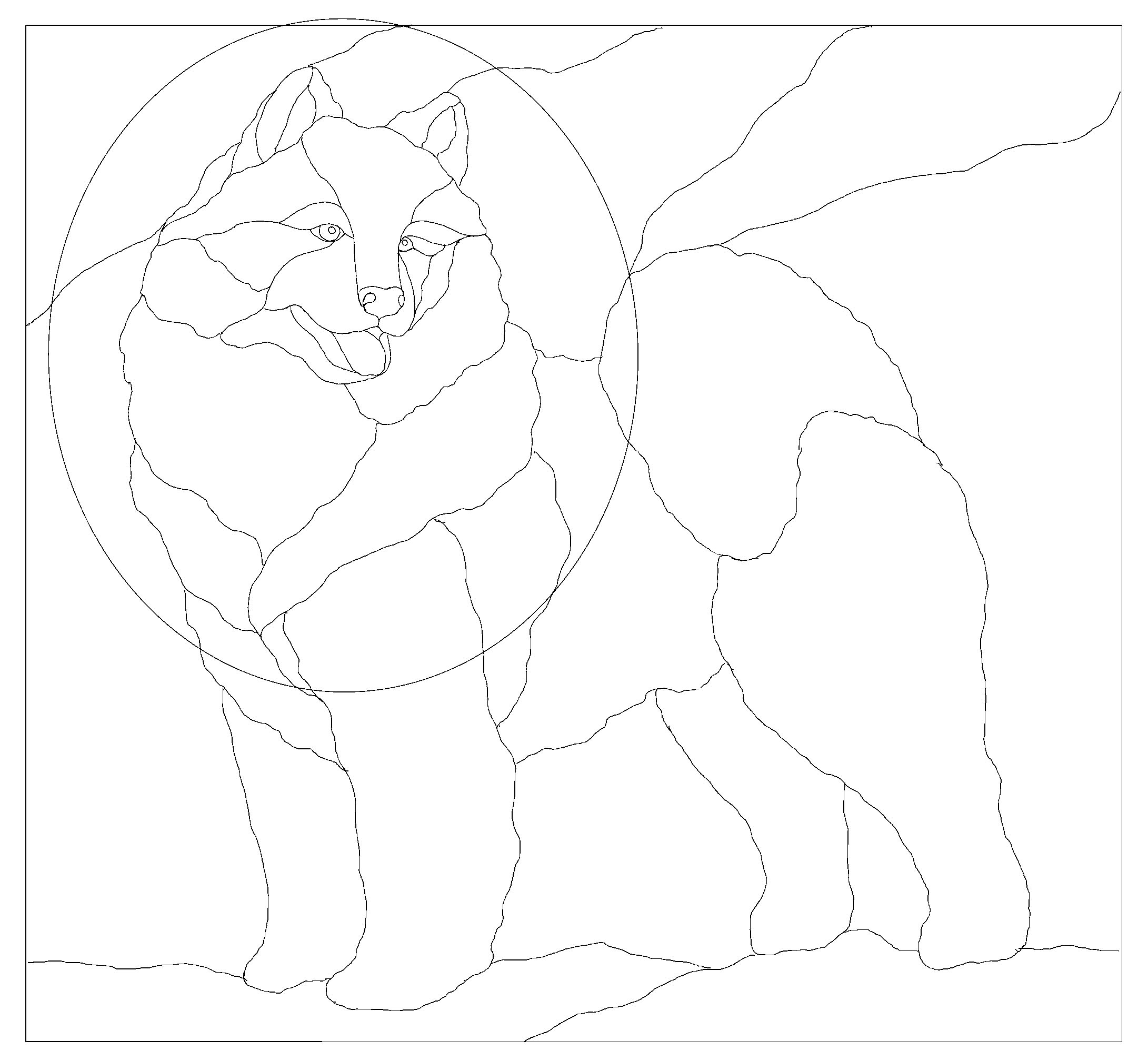 Samoyed dog stained glass pattern. Recommended size 18×18, or done as an Oval! just line pattern