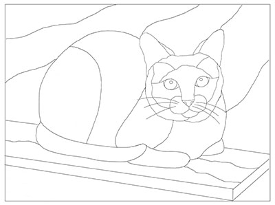 Siamese Cat, Kitten stained glass pattern. Line pattern only. No color. Can be enlarged to any size!